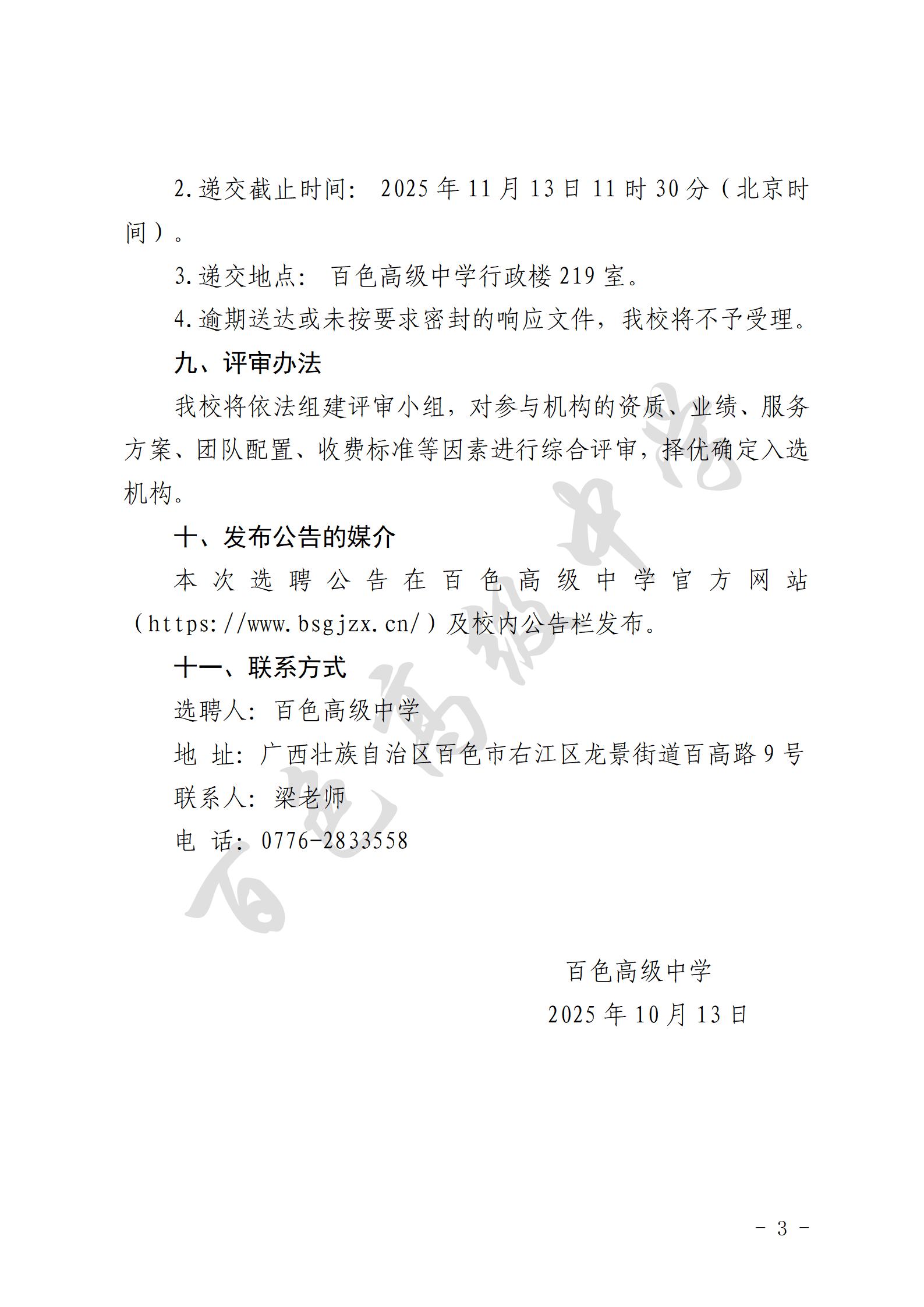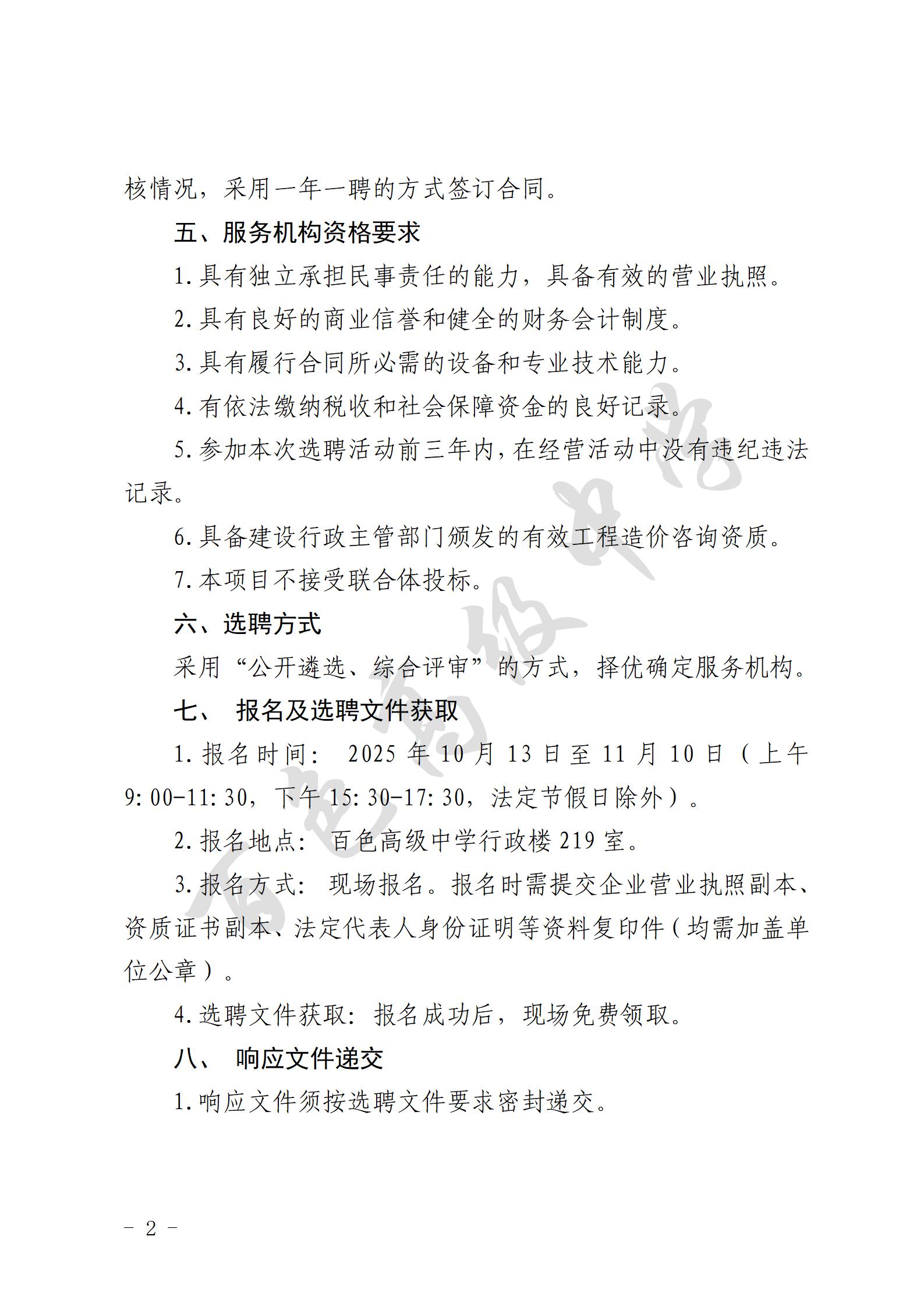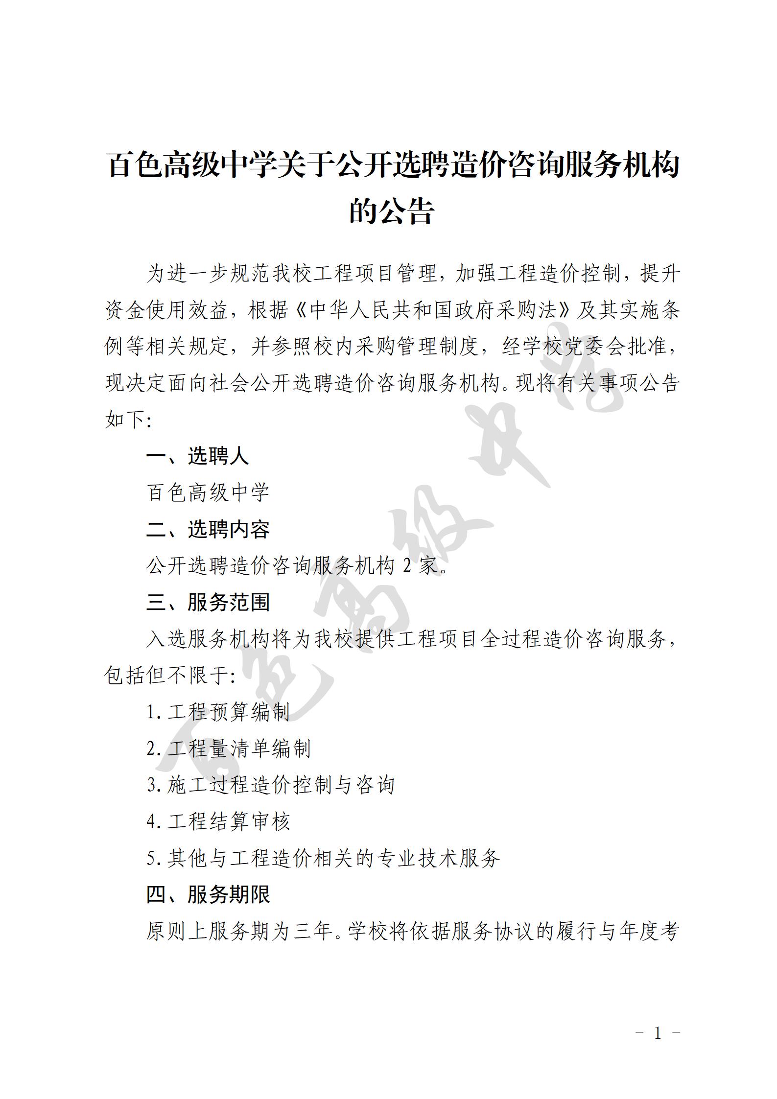 百色高级中学关于公开选聘造价咨询服务机构的公告
