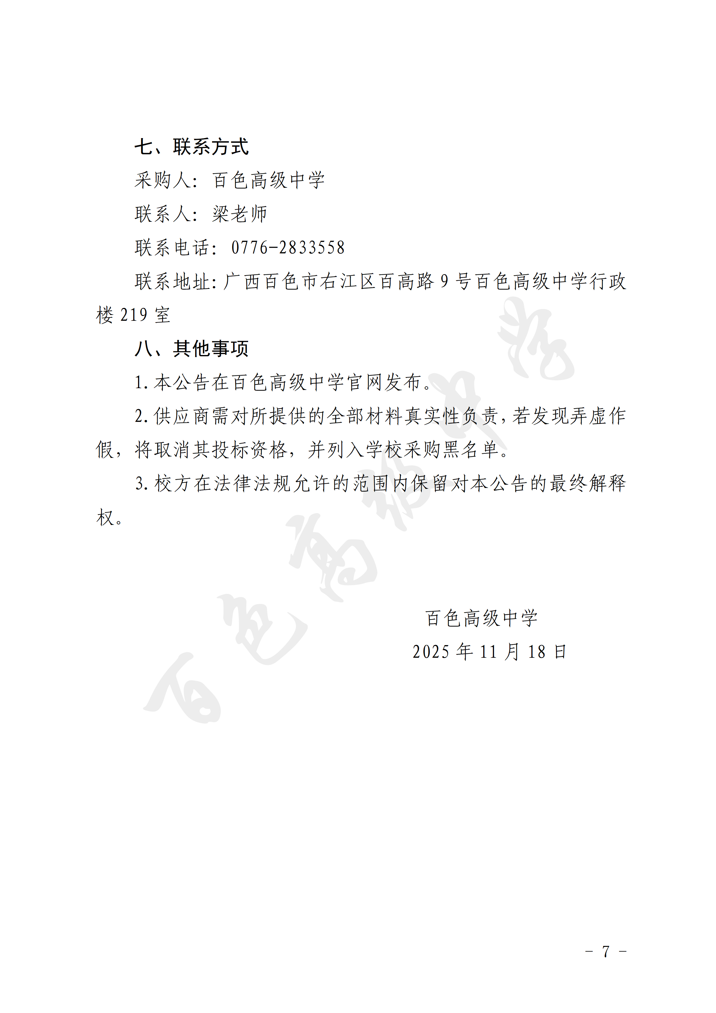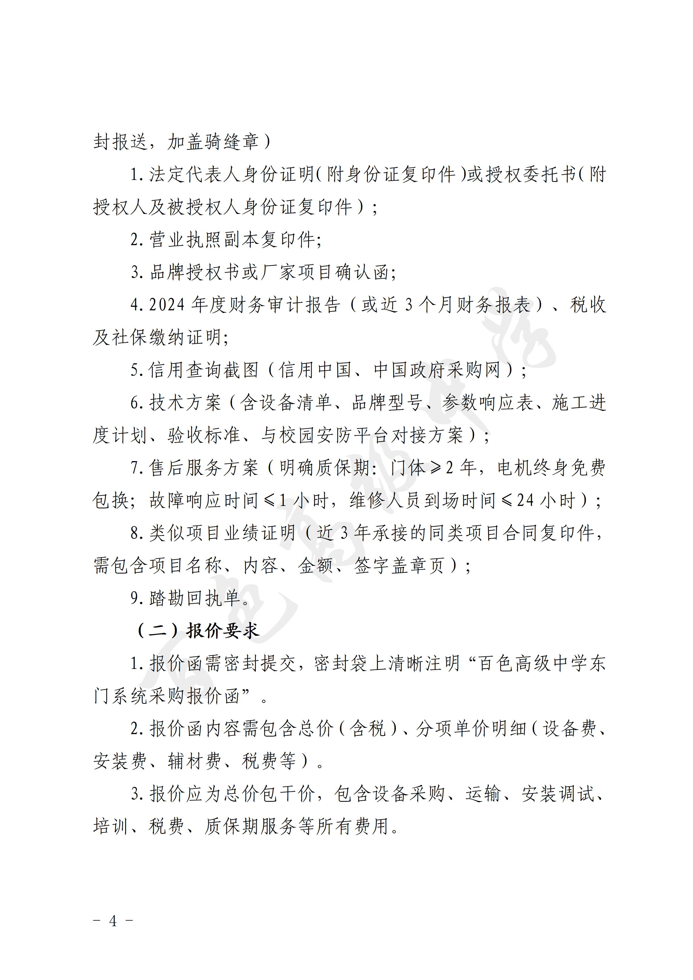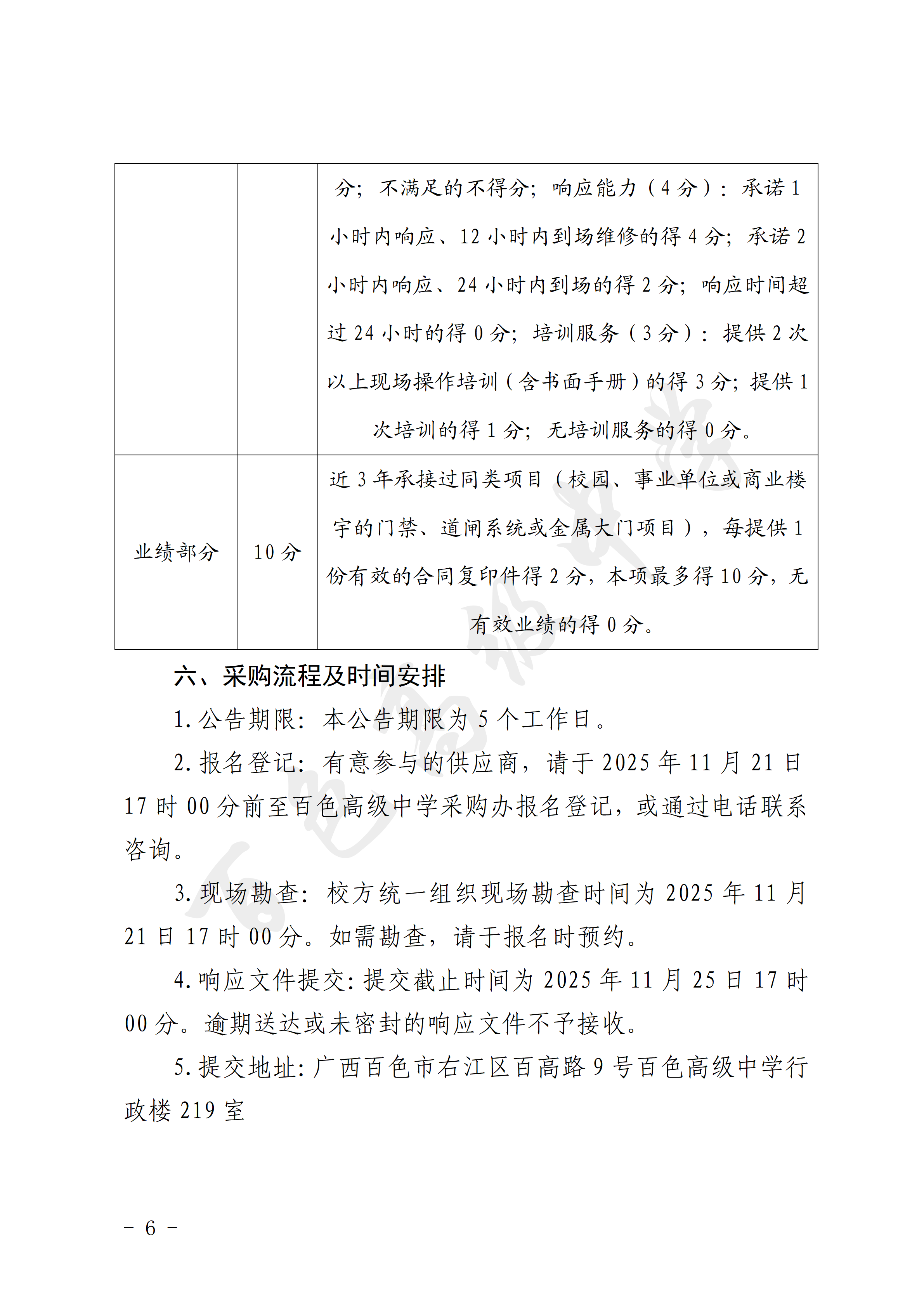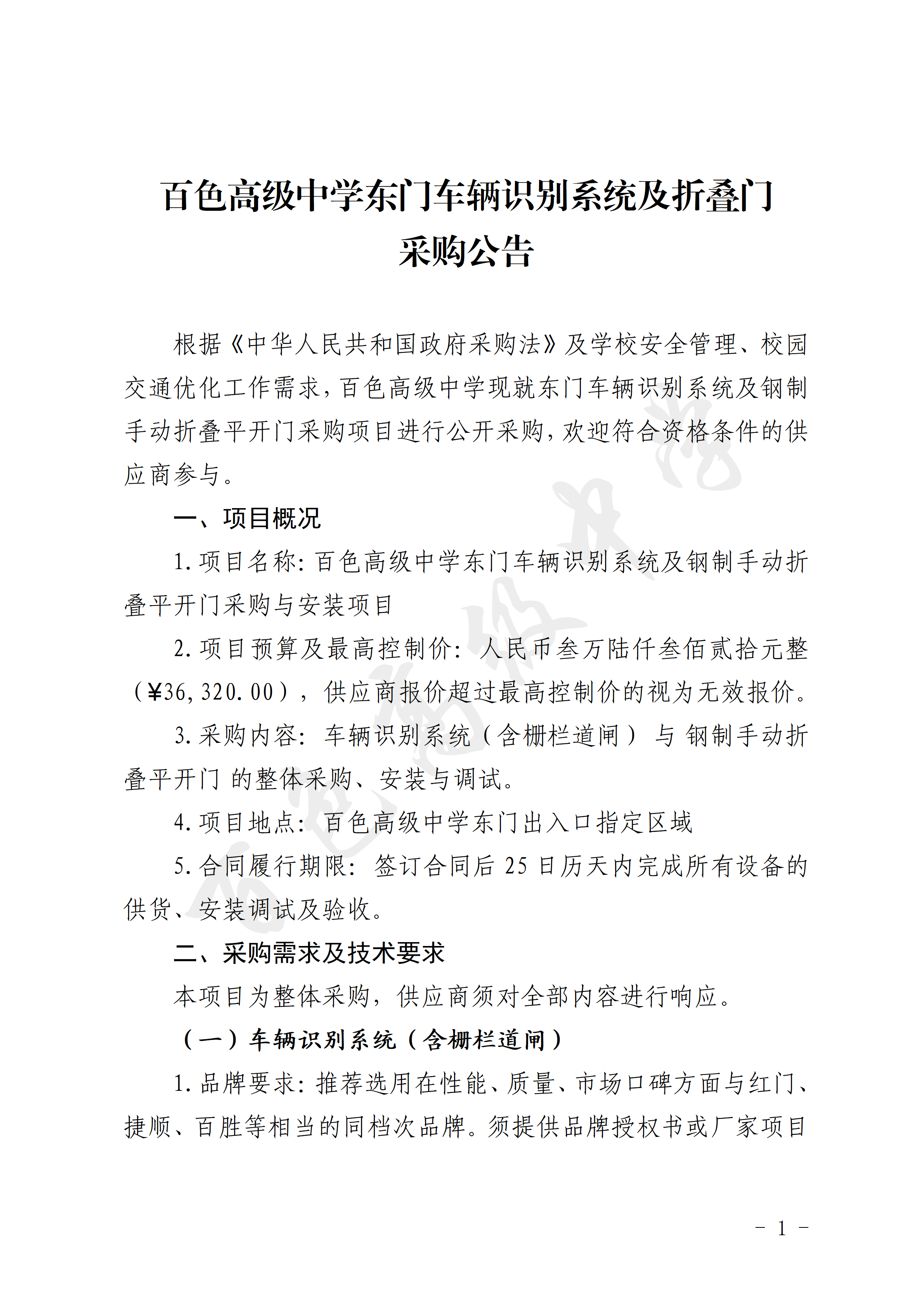 百色高级中学东门车辆识别系统及折叠门采购公告