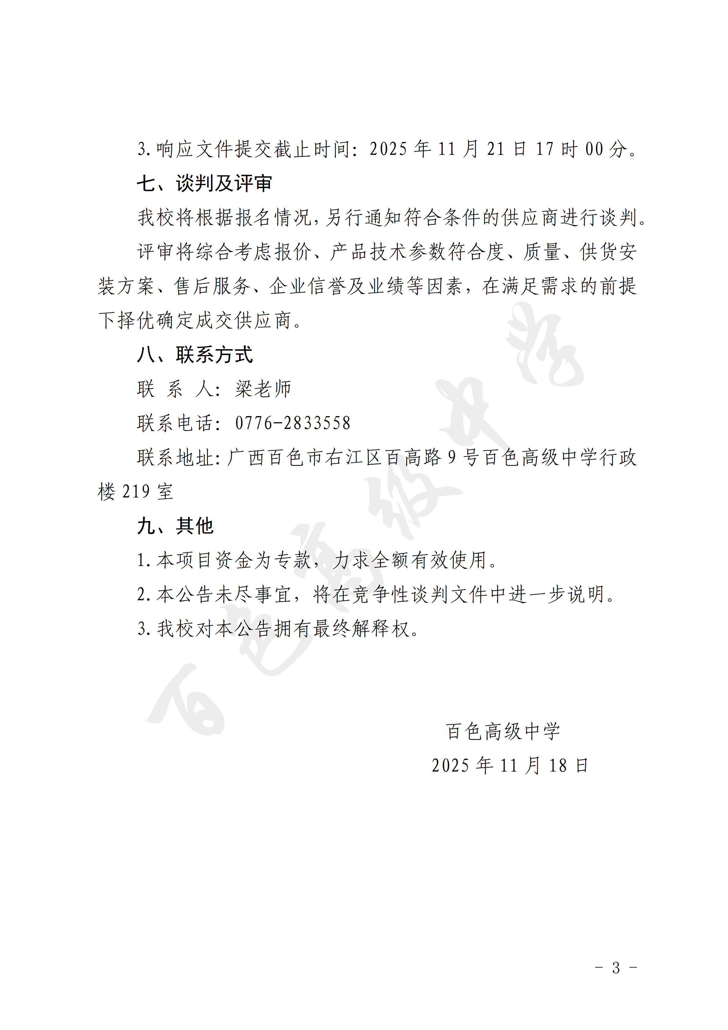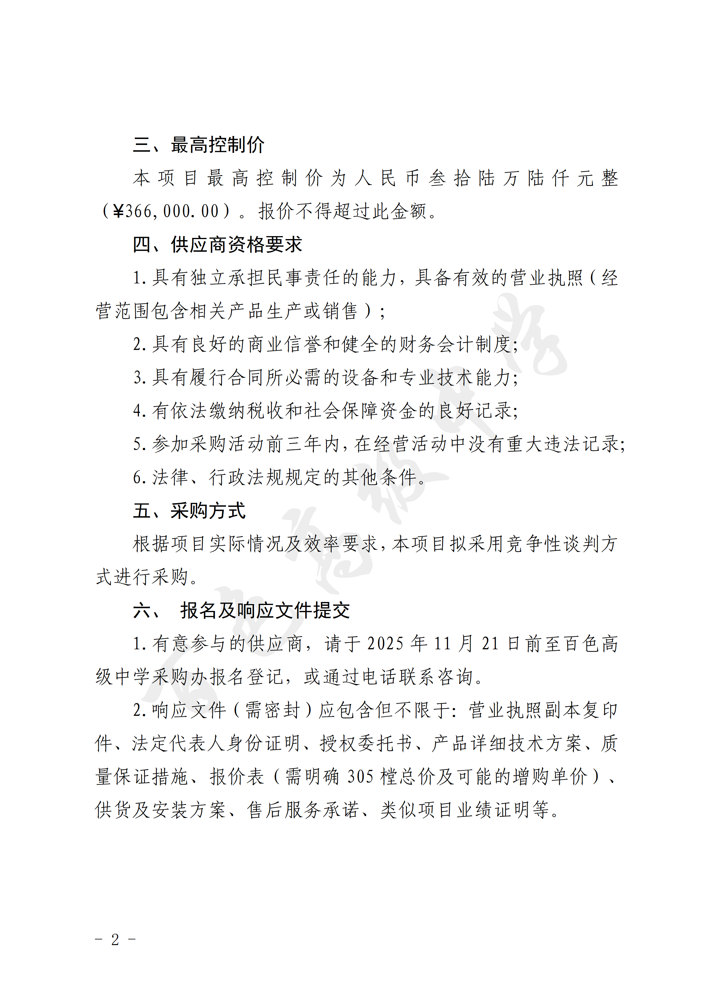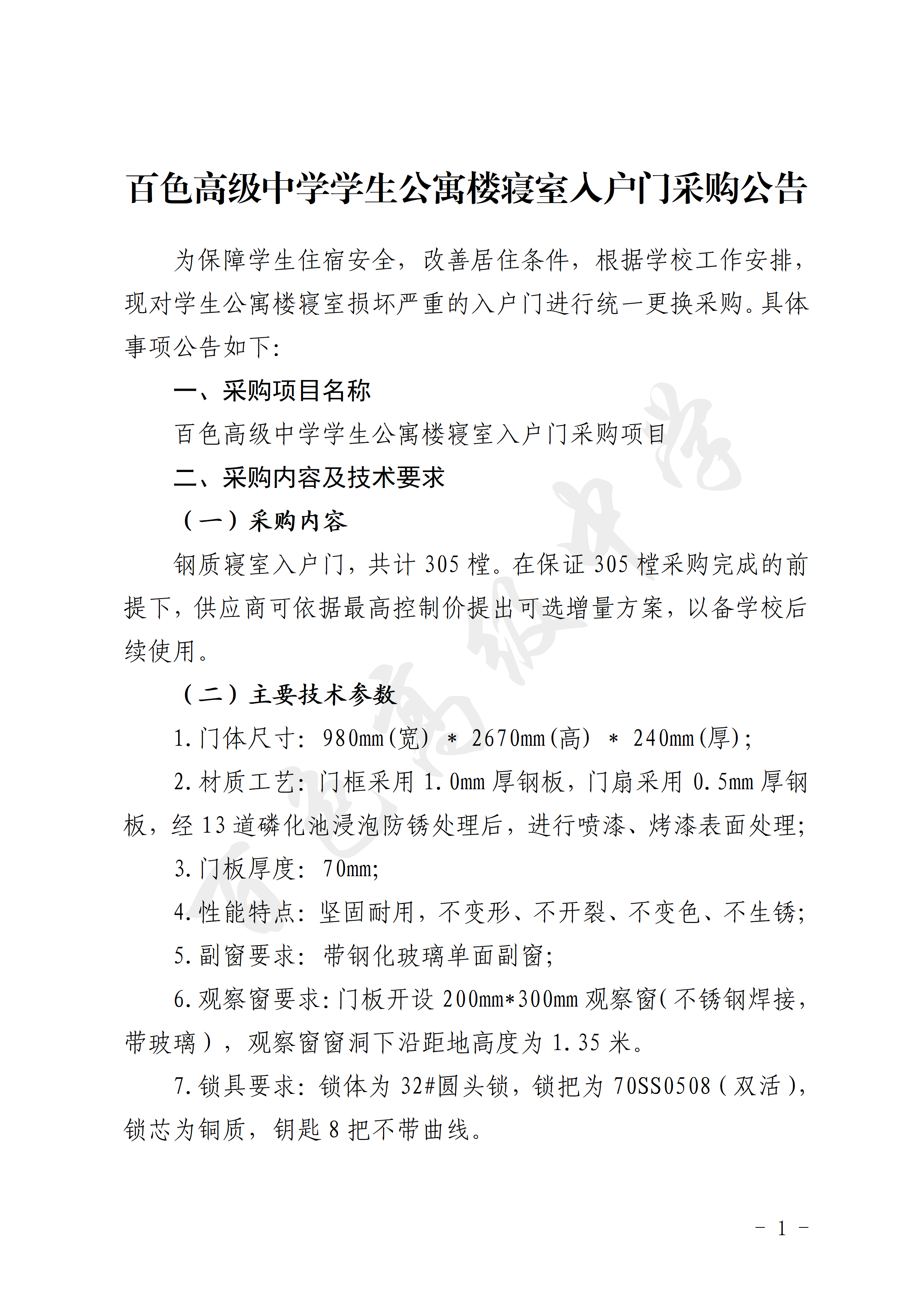 百色高级中学学生公寓卫生间水网改造项目采购公告