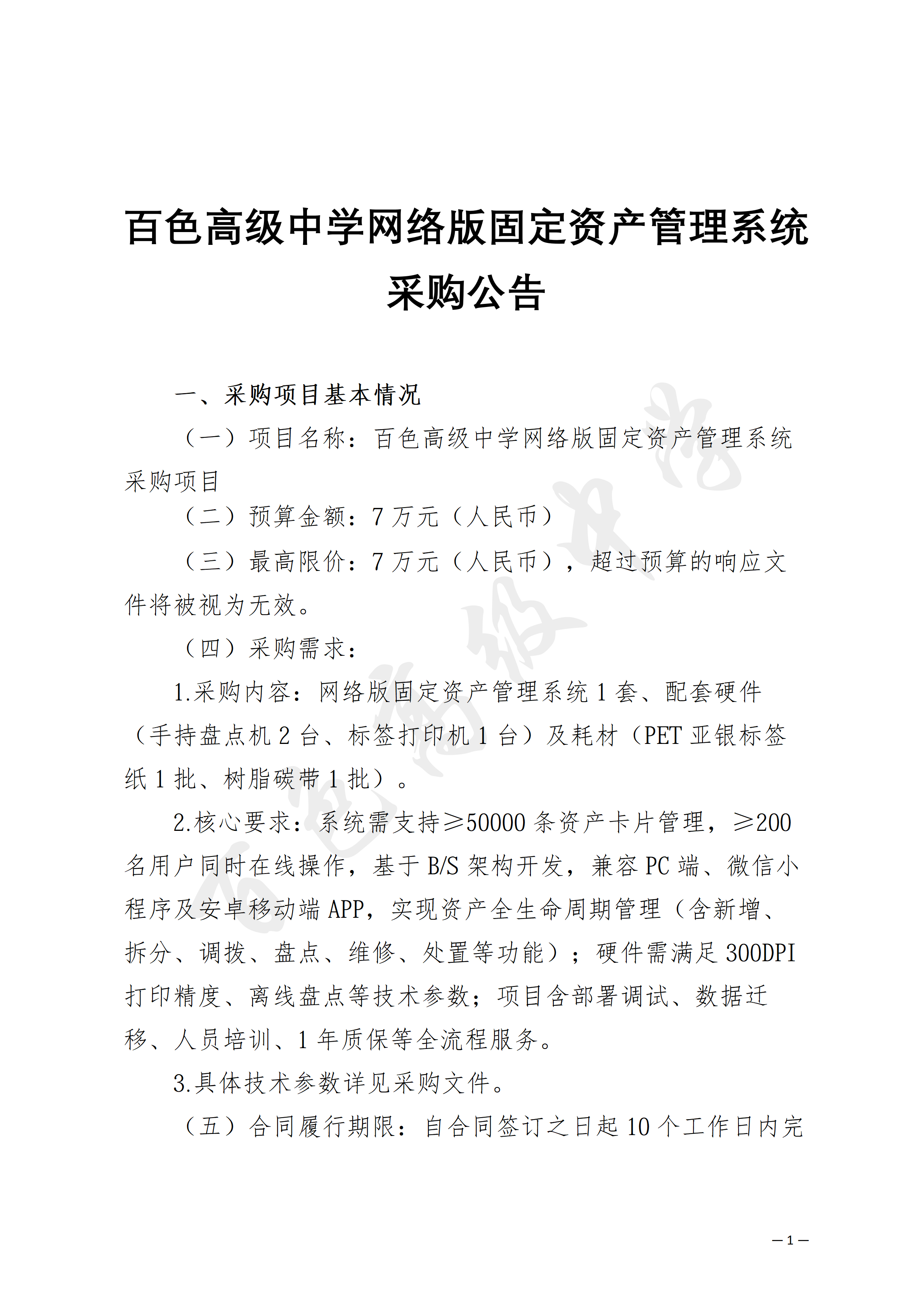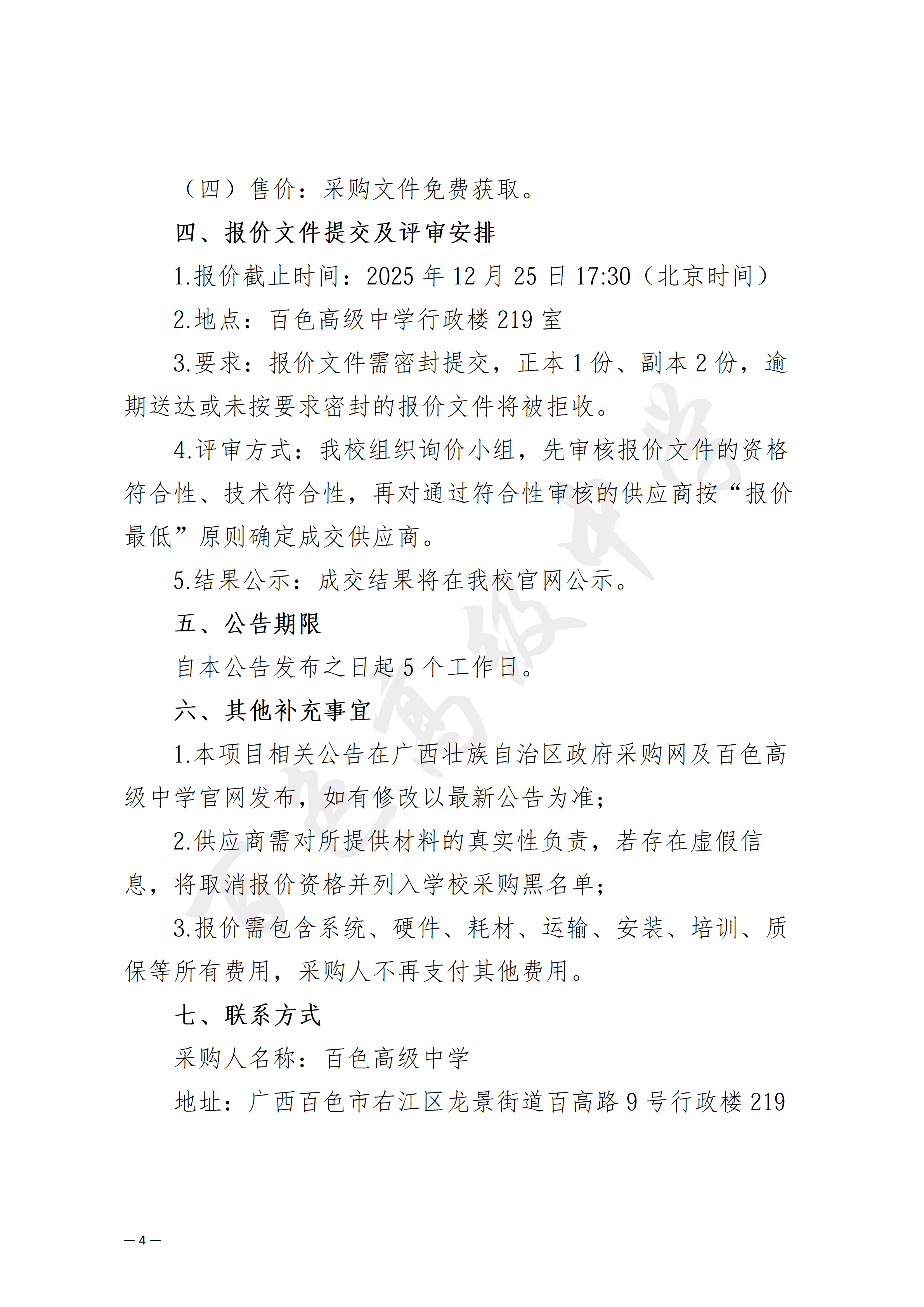 百色高级中学2025年学生课桌椅采购项目询价公告