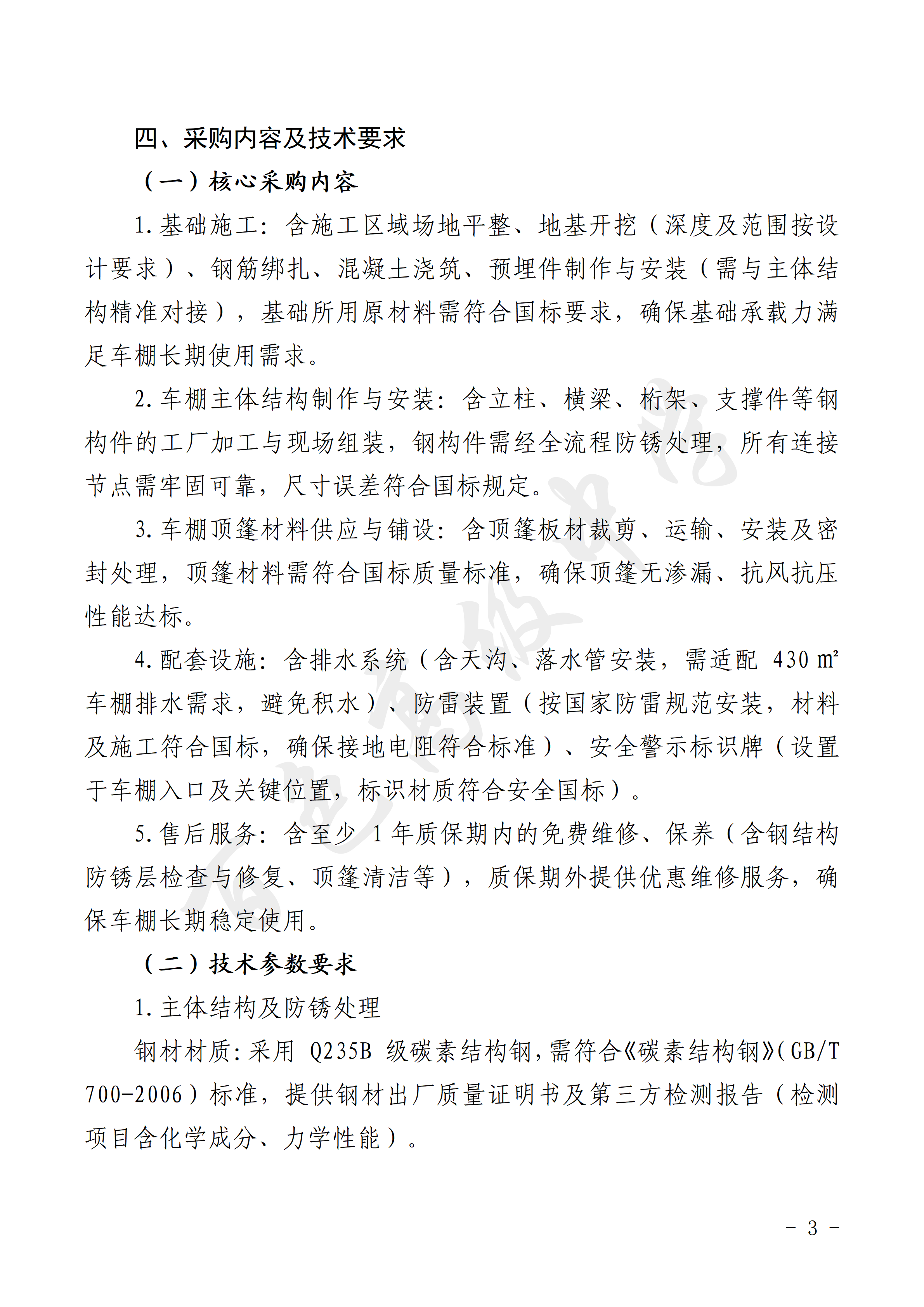 百色高级中学A区停车场车棚安装项目 采购公告(三次)