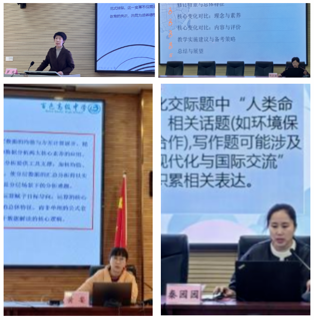 讲座之后,是分享交流环节,分理科组、文科组和综合组分场地进行。每一科目都分别有总校、分校的一位教师代表进行本教研组第一阶段的研讨成果的分享。各教师代表或旁征博引,或循循善诱,通过对比感受、策略分享、试题剖析等形式,全方位呈现了各组对新课标的解读与实践探索,汇报内容既有理论层面的深度思考,又有教学实践中的具体案例,兼具针对性与可操作性,受到了在场老师的高度好评。